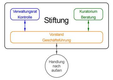 | Keywords: Stiftungsorgane.png de Beispiel für eine Stiftung mit drei Stiftungsorganen Ein Vorstand orange führt die Geschäfte und vertritt die Stiftung nach außen und nach innen ein Verwaltungsrat blau kontrolliert den Vorstand und ein Kuratorium grün berät den Vorstand own Membeth 2016-07-18 Foundations organizations Cc-zero |