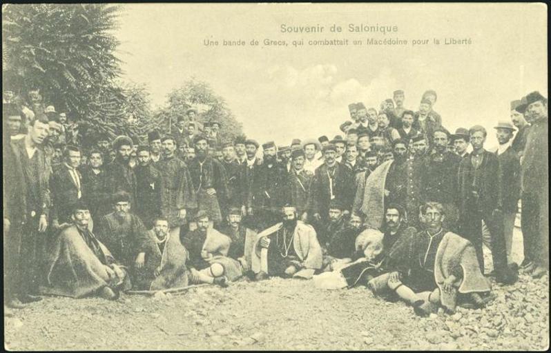 Keywords: Stilianos Klidis Ioannis Doxoiannis 1908.jpg Пос ещане на солунската га а на освободените от Битолския затво 120 г ъцки анда ти с ед които Стилианос Клидис и Йоанис Доксоянис седнал шести от ляво на дясно с гъста б ада Ottoman postcard http //www imma edu gr/imma/dbs/Artifacts/index html start 2164 show 1 Author 1908-07-27 Greek Struggle for Macedonia PD-Ottoman |