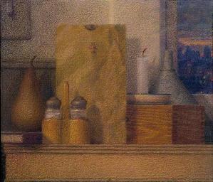 Keywords: Still Life For Gerard 2009, colored pencil and ink wash on canvas, 12 x 14. jpg art-call Artistically