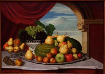 | Keywords: Still Life, Fruit in a Classical Setting, by John Vanderlyn, Jr., c. 1854-1858, oil on canvas - Albany Institute of History and Art - DSC08097.JPG en Exhibit in the Albany Institute of History and Art Albany New York USA This artwork is in the public domain because the artist died more than 70 years ago Photography was permitted in the museum without restriction 2013-06-13 11 01 25 own Daderot cc-zero Paintings in the Albany Institute of History and Art Uploaded with UploadWizard John Vanderlyn Jr 1850s oil on canvas paintings in the United States Vanderlyn |