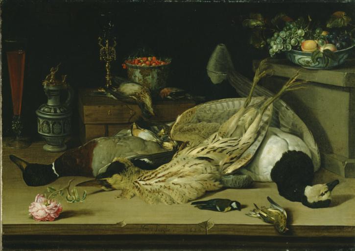 | Keywords: Still Life with Dead Birds.png artwork Still Life with Dead Birds creator Christoffel van den Berghe Flemish about 1590 - after 1642 Q20181716 1624 Oil on canvas 72 4 × 100 3 cm 28 1/2 × 39 1/2 in http //www getty edu/art/collection/objects/588/christoffel-van-den-berghe-still-life-with-dead-birds-flemish-1624/ Institution Getty Center Los Angeles PD-100 Christoffel van den Berghe Collections of the Getty Center Uploaded with VicuñaUploader | ||||