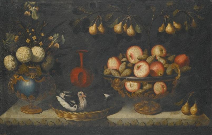 | Keywords: Still Life with Flowers in Vase, Apples & Pears by Bernardo Polo.jpg  en Still Life with Flowers in a Gilt-Mounted Bluestone Vase and a Bowl of Apples with a Sprig of Pears by Bernardo Polo c 1650-75 oil on canvas 73 by 112 cm Sotheby's Bernardo Polo c 1650-75 Bernardo Polo PD-old-100  |