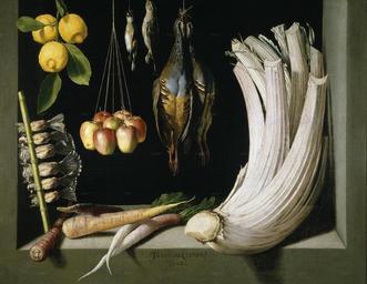 | Keywords: Still Life with Game Fowl,Vegetables and Fruits, Prado, Museum,Madrid,1602,HernaniCollection.jpg Artwork Q5731138 de Stillleben mit Wildvögeln Gemüse und Früchten oil canvas de Madrid de Museo del Prado http //www museodelprado es/imagen/alta_resolucion/P07612 jpg 1602 Creator Fra Juan Sánchez Cotán Other versions PD-old-100 1602 paintings in Spain Baroque paintings in Madrid Still life paintings of vegetables Still life paintings in the Prado Museum Fray Juan Sánchez Cotán Museo de la Trinidad Baroque still life paintings of fruit 1600s still life paintings Cynara cardunculus Lemons in art Carrots in art |
