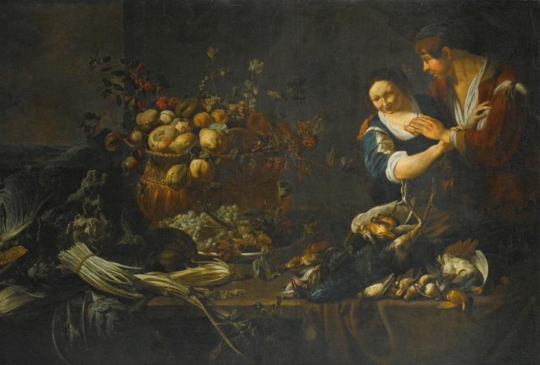 Keywords: Still Life with a Maid and Servant Cavorting by Adriaen van Utrecht.jpg artwork Creator Adriaen van Utrecht and Creator Theodoor Rombouts or A Still Life of Fruit Vegetables and Game on a Table with a Maid and Servant Cavorting 1631 oil on canvas size cm 143 5 213 2 object history http //www sothebys com/content/sothebys/fr/auctions/ecatalogue/2015/old-master-british-paintings-day-sale-l15034/lot 190 html Sold at Sotheby's on 9 July 2015 London PD-old-100 Still life paintings by Adriaen van Utrecht Kitchen scenes by Adriaen van Utrecht 1631 paintings 1630s still life paintings 17th-century oil on canvas paintings |
