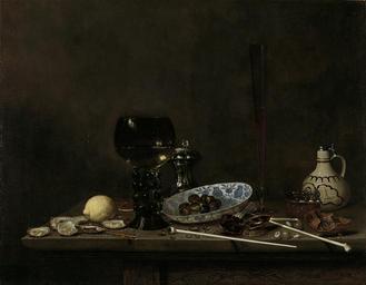 | Keywords: Stilleven met roemer, fluit, aarden kruik en pijpen Rijksmuseum SK-A-3988.jpeg nl Stilleven met een roemer met witte wijn een fluitglas en laag glas met bier een aarden kruik twee pijpen met een vuurtestje en een tabaksdoos een Chinese bord met olijven een citroen enkele oesters en een mes drager Height cm 69 drager Width cm 89 5 exhibition history 2007-2007 Rembrandt and the Golden Age of Dutch Art Treasures from the Rijksmuseum - III - A Portland Oregon 2007-2007 Rembrandt and the Golden Age of Dutch Art Treasures from the Rijksmuseum - II - A Phoenix Arizona 2006-2007 Rembrandt and the Golden Age of Dutch Art Treasures from the Rijksmuseum - I - A Dayton Ohio Institution Rijksmuseum Technique oil canvas object history Acquisition 1960 object type Potential derivatives exist check http //commons wikimedia org/w/index php search Rijksmuseum+SK-A-3988 this search PD-US PD-old-100 Data and photography rights All data and all images made available through the API are either in the public domain or are subject to a CC0 license https //www rijksmuseum nl/en/api/terms-and-conditions-of-use cc-zero place of creation http //www rijksmuseum nl/collectie/SK-A-3988 Stilleven met roemer fluit aarden kruik en pijpen Q17335762 Uploaded with GWToolset Stilleven met roemer fluit aarden kruik en pijpen Rijksmuseum SK-A-3988 http //www rijksmuseum nl/media/assets/SK-A-3988 Images uploaded by Fæ Images from the Rijksmuseum Paintings by Jan van de Velde III in the Rijksmuseum Amsterdam Jan van de Velde III |