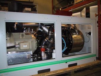 | Keywords: STM Stirling Generator set.jpg Copied from en wiki Original caption is as follows A Stirling engine and induction generator set This is a 55 kW electrical generator set for combined heat and power applications The total enclosure length is about 2 5 metres and this assembly has a mass of about 1300 kg At the right side is the combustion chamber and heat exchanger The four-cylinder regenerative Stirling engine is adjacent to the combustor with the swash-plate drive housing obscured by the center post of the enclosure At the left of the picture is a 55 kW induction motor used as a generator and to start the Stirling engine Below the induction generator terminal box black cable going to left is an electrolyzer used to replenish the hydrogen gas working fluid of the engine To the right of the electrolyzer is a small blower to force combustion air into the burner assembly The blue hoses circulate cooling water through the cool-side heat exchanger - a hose connection point for cooling water is just above at the right end of the induction generator The Stirling engine/generator set shown here is made by STM Power Inc and is intended for auxiliary power and heat production at large farms or for plants that produce waste flammable oils This engine can also be adapted to run on low-heat-value landfill gas or biofuel digester gas A photo I user Wtshymanski took and that I release to the public domain Own 2010-03-07 User Wtshymanski en English Wikipedia Wtshymanski Stirling engines Housing machine elements Cogeneration Blockheizkraftwerk |