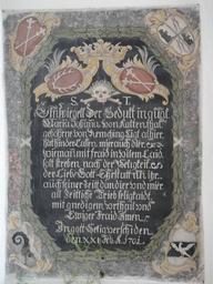 | Keywords: StMichael-Apfeltrang10.jpg Pfarrkirche St Michael in Apfeltrang Gemeinde Ruderatshofen; Scagliola-Epitaph für Johanna von Kaltental geb von Rechmingen 1701 ; mit Wappen Kaltental und Remchingen sowie in den Ecken Ahnenwappen Remchingen Gaisberg Berndorf Syrgenstein own 2012-04-21 12 58 45 Ordercrazy St Michael Apfeltrang Wall mounted church monuments in Swabia administrative region Scagliola 1701 works in Bavaria Mosaics of coats of arms Coats of arms of Kaltental family Coats of arms of Remchingen family Coats of arms of Gaisberg family Coats of arms of Berndorf family Coats of arms of Sirg von Sirgenstein family |