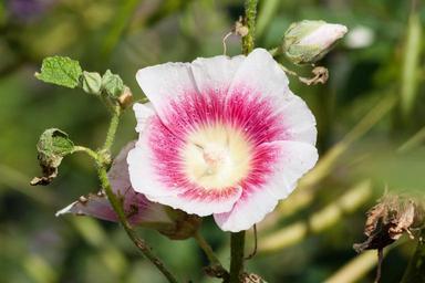 Keywords: stock rose alcea rosea hollyhock poplar rose baby rose stock rose garden flowering plant mallow malvaceae flower garden pink white bloom bud summer plant nature