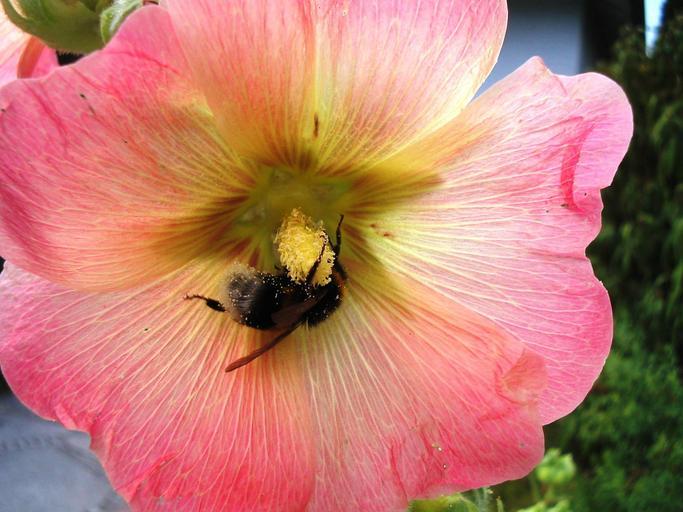 Keywords: stock rose blossom bloom pink mallow bright flowers bloom baby rose pollen bee pollen bee honey sprinkle