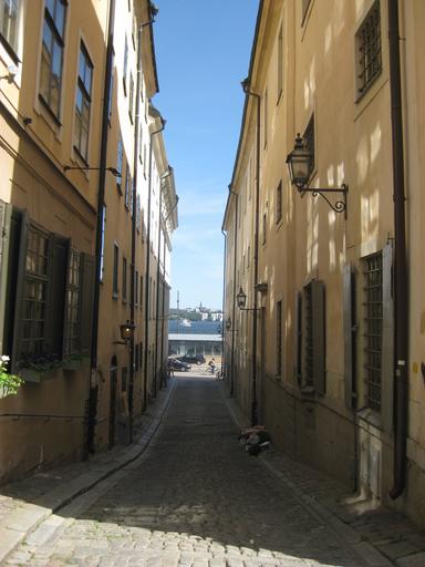 Keywords: stockholm gamla stan old town alley sun facade window home building architecture eng road sweden
