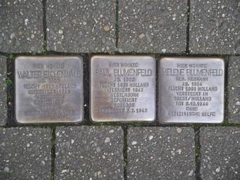 | Keywords: Stolperstein Düsseldorf 9 Benrath Hauptstraße 46 3 Stolpersteine.jpg de Stolperstein Düsseldorf 9 Benrath Hauptstraße 46 3 Stolpersteine 2016-04-02 18 40 30 own Harald Malte Schwarz other versions 51 165262 6 8743027999868 cc-zero Stolpersteine in Düsseldorf-Benrath |