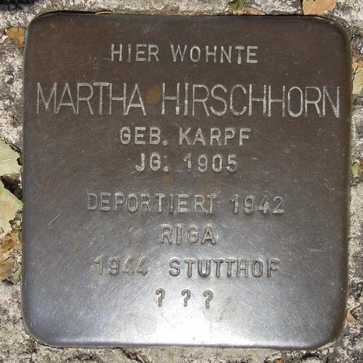| Keywords: Stolperstein Gelsenkirchen Bismarkstraße 152 Martha Hirschhorn.JPG de Stolperstein Gelsenkirchen Bismarkstraße 152 Martha Hirschhorn 2015-06-11 12 28 01 own Gmbo 2013 other versions 51 522664194897 7 1026250906023 cc-zero Uploaded with UploadWizard Stolpersteine in Gelsenkirchen |