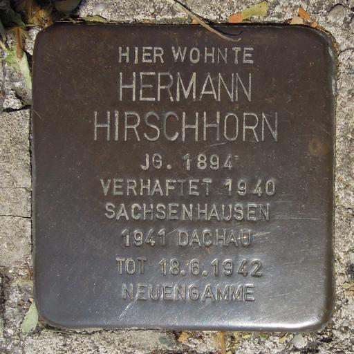 | Keywords: Stolperstein Gelsenkirchen Bismarkstraße 152 Hermann Hirschhorn.JPG de Stolperstein Gelsenkirchen Bismarkstraße 152 Hermann Hirschhorn 2015-06-11 12 27 52 own Gmbo 2013 other versions 51 522664194897 7 1026250906023 cc-zero Uploaded with UploadWizard Stolpersteine in Gelsenkirchen |