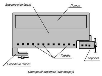 Keywords: Stolrn-tool.jpg ru Схема уст ойства столя ного ве стака fr Établi de sculpteur sur bois pour bas-relief avec presse allemande et casier pour gouges а исовано мной VladimirZhV 4 фев аля 2010 г Workbench woodworking Wood carving tools