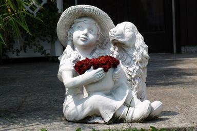 Keywords: stone figure garden statue sculpture decoration garden statue gartendeko fig girl dog flowerpot
