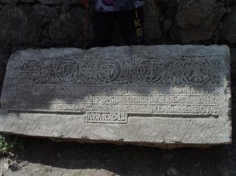 Keywords: Stone of Funa.jpg Stone with simbols of Theodoro principality in Funa fortress Crimea Own 2006-08-21 Evgenij Rabchuk Funa fortress