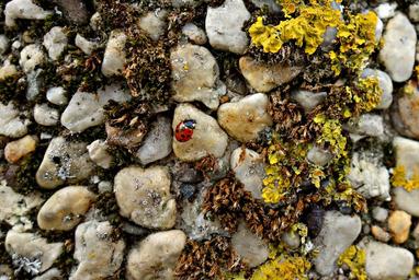 Keywords: stone pebble moss overgrown ladybug