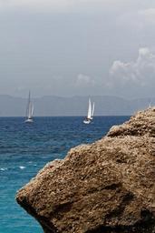 Keywords: stone rock greece rhodes sea water wave sailing boat boot sky