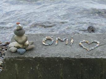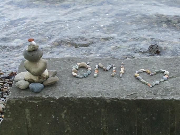 Keywords: stone turrets stones heart pattern love water lake stacked together