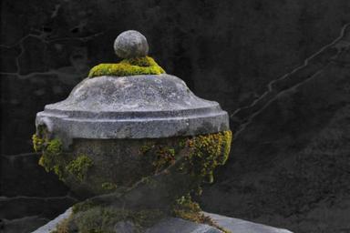 Keywords: stone urn grave tomb cemetery stone vascular antique old moss overgrown sculpture tombstone ailing vascular rock carving historically silent mourning death stone memorial grieve rest commemorate symbol gloomy marbled