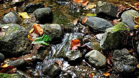 Keywords: stones bach water nature close stream bed bach stones leaves autumn