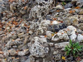 Keywords: stones natural stones large rock leaves yellow orange plant slope