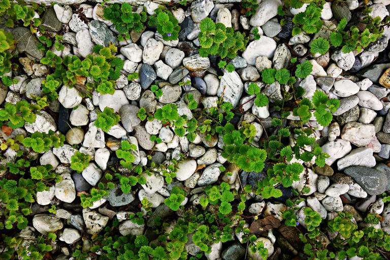 Keywords: stones pebbles plants growth growing arrangement cobblestone heap