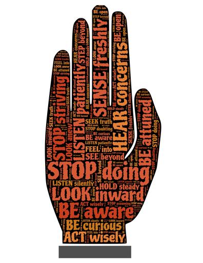 Keywords: stop halt warning guidance hand gesture look listen awareness signal sign reassess back off pause quiet attention message alert