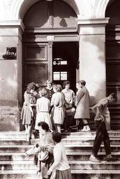 | Keywords: Stopnišče pred I. gimnazijo - začetek šole 1960.jpg Stopnišče pred I gimnazijo - začetek šole 272027 1960-09-05 creator Dragiša Modrinjak PD-Slovenia 1960 in Slovenia Historical black and white photographs of Maribor Maribor First Gymnasium School children of Slovenia Entrance stairs in Maribor Doors in Maribor Photographs by Dragiša Modrinjak |