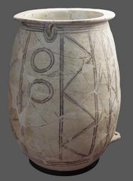 Keywords: Storage jar Aegina Greece.png fr Jarre de stockage du milieu de l'Âge de Bronze avec décorations géométriques peintes vers 1900 - 1800 av J -C Musée d'Égine Grèce en Middle Bronze Age storage jar with painted decoration ca 1900 - 1800 BCE Aegina museum Greece 2015-10-27 own Jebulon other versions 37 749626 23 424833 cc-zero QualityImage Storage jars 20th-century BC pottery Ancient Greek pottery in Greece Archaeological museum of Aegina Gray background Quality images of Aegina Quality images by Jebulon