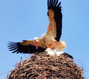 Keywords: stork nest bird bird nest spring nesting wildlife nature big flying sky blue wing rural symbol n