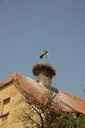 Keywords: stork nest bird sky landing blue summer outdoor clear natural flying roof nature