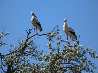 Keywords: stork storks rattle stork birds animals sky bird apple tree spring two signs of spring