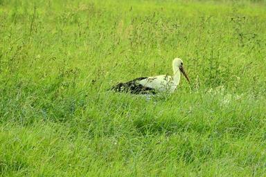 Keywords: stork white stork foraging meadow high grass adebar birds eastern