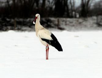 Keywords: storks white stork bird animals bill rattle stork ciconia ciconia nature pride animal portrait black and white snow