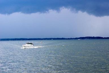 Keywords: storm lake motor ship gloomy clouds sky water boats plauer see