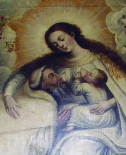| Keywords: StPedroNolasco detail.jpg en Lactation of Saint Pedro Nolasco detail Oil on canvas 17th century 1663 Monastry La Merced in Cuzco/Peru de Lactatio des Heiligen Pedro Nolasco Ausschnitt Öl auf Leinwand 17 Jahrhundert 1663 Kloster La Merced in Cusco/Peru Own photo Ignacio Chacón 1663 PD-old-100 PD-old-100 Peter Nolasco Paintings of Madonna lactans Christian saints in art Art in Cusco Roman Charity Breastfeeding wear | ||||