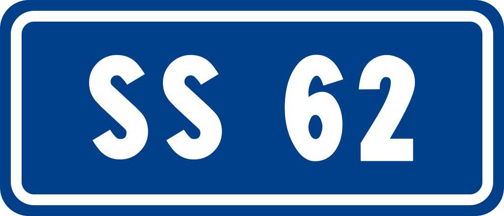 Keywords: Strada Statale 62 Italia.svg Simbolo della SS 62 Fatto da me basato su lavoro esistente 2007-08-09 Nicovin Diagrams of state road signs of Italy 062 Strada Statale 62 della Cisa 62 number