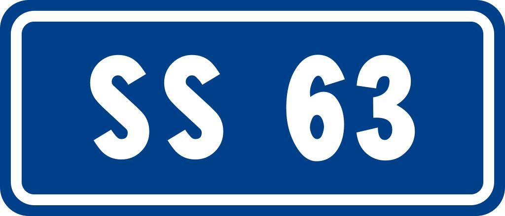 Keywords: Strada Statale 63 Italia.svg Simbolo della SS 63 Fatto da me basato su lavoro esistente 2007-08-09 Nicovin Diagrams of state road signs of Italy 063 Strada Statale 63 del Valico del Cerreto 63 number