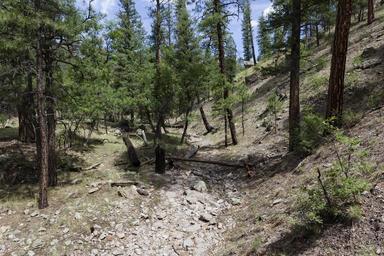| Keywords: Northern Black Range, north-northeast of Burnt Cabin Flat in Straight Gulch, about half a mile east of the Continental Divide Trail, 33.50511 -107.82711, Catron County, New Mexico, 31 Jul 2016. Ponderosa pine and Douglas fir woodland, with <i>Allium cernuum, Achillea millefolium, Antennaria parvifolia, Artemisia carruthii</i> var. <i>wrightii, Erigeron arizonicus, Erigeron neomexicanus, Erigeron speciosus, Leibnitzia lyrata, Senecio wootonii, Lithospermum multiflorum, Hesperidanthus linearifolius, Silene laciniata, Sedum stelliforme, Thermopsis rhombifolia, Quercus gambelii, Geranium caespitosum, Agastache pallidiflora, Monarda fistulosa, Pinus ponderosa, Pseudotsuga menziesii, Penstemon barbatus, Agrostis scabra, Bromus ciliatus, Elymus longifolius, Koeleria macrantha, Thalictrum fendleri, Fragaria vesca</i> subsp. <i>bracteata, Fragaria virginiana</i> subsp. <i>glauca, Potentilla subviscosa, Potentilla thurberi, Rosa woodsii, Galium fendleri, Houstonia wrightii, Heuchera novomexicana, Valeriana arizonica,</i> etc. |
