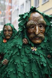 Keywords: strassenfasnet fools jump swabian alemannic fasnet move haes mask carnival masquerade costume panel tradition customs haestraeger wooden mask carved custom fig waldschrat forest spirit male man fools guild guild