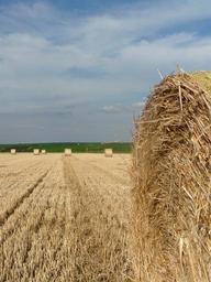Keywords: straw bales stubble harvest time round bales cereals harvested straw role bale sky compressed bales horizon agriculture nature clouds