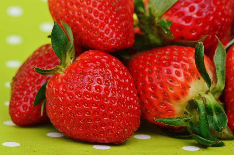 Keywords: strawberries fruit close fruits red sweet food eat delicious