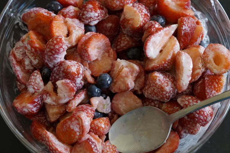 Keywords: strawberries snipped cut fruit salad blueberries berries shell fruits delicious vitamins healthy sweet blueberry many fresh consumption fruit berry harvest ripe food dessert benefit from edible tasty juicy