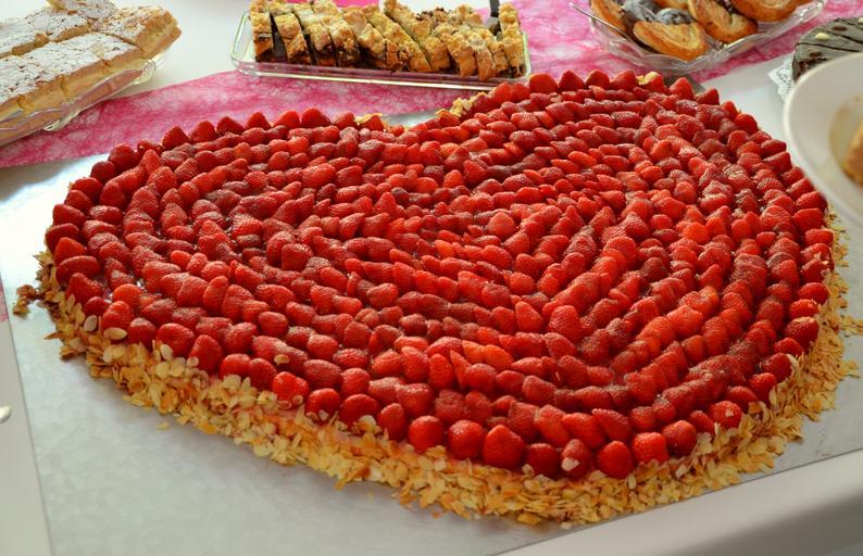 Keywords: strawberries strawberry cake heart cake strawberry pie festival celebration bake wedding red eat sweet pastries love wedding cake giant pie large