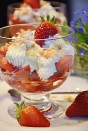Keywords: strawberries strawberry cup ice cream dessert ice cream vanilla ice cream glass spring sweet decoration food ice cream sundae sweet dish