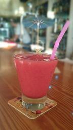 Keywords: strawberry drink ice straw pink cockail red drink portion