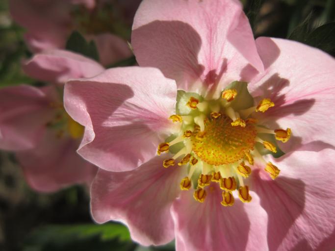 Keywords: strawberry flower strawberry strawberry plant close spring pink blossom bloom sun light bloom pistil