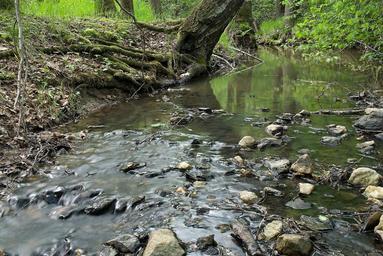 Keywords: stream bank change stones water surface trough stony flowing trees forest tributary stropnický reflection