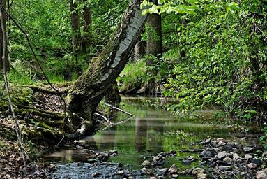 Keywords: stream bank change stones water surface trough stony flowing trees forest sun shadow tributary stropnický reflection hdr